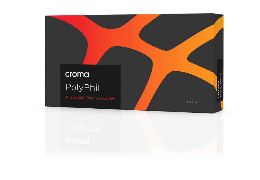 ◆ Croma PolyPhil™ is a complete series of injectable rejuvenating skin boosters that work by stimulating the body’s own cell regeneration. PolyPhil™ consists of long-chain polynucleotides (PN) that promote hydration of the skin and scavenge free radicals, building an optimal environment for the growth of fibroblasts (cells that produce collagen). As a consequence, they promote the production of new collagen and elastic fibres, stimulating the body’s own cell regeneration.
