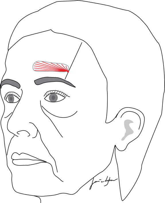 During the ageing process, many different anatomical changes contribute to the aged appearance of the face [1]. Focusing on the forehead, typical age-related changes are regression of the hairline, solar damage, skin laxity, dynamic wrinkles, reduction of fat and bone...