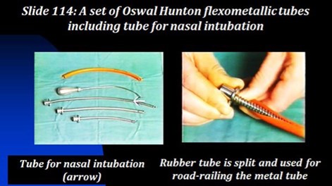 There was an article on using metal tubes from the States, but they were not marketed. Our instrument maker marketed them as Oswal-Hunton flexo-metallic fire-proof anaesthetic tubes. Hand in hand, we continued to develop laryngeal surgery using several anaesthetic techniques such as tubeless anaesthesia, jet ventilation, apnoeic technique, etc. Then there were other ways, a bivalve laryngoscope, pressing on the thyroid cartilage to improve the exposure and so on.