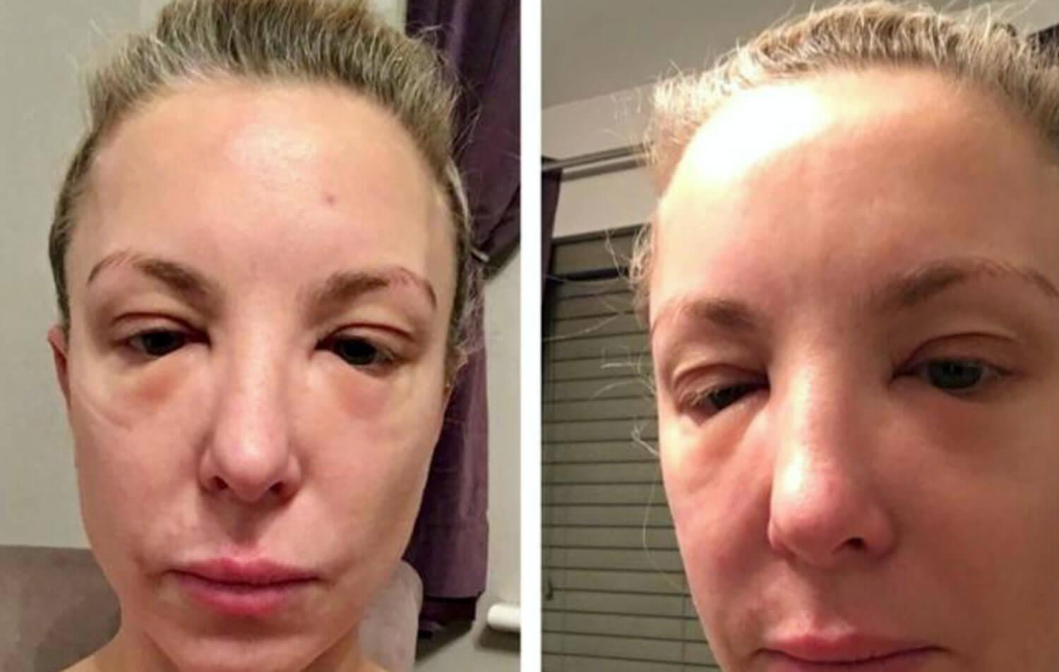 The injection of the right temple was halted immediately after having injected approximately 0.2ml of the product, due to rapid onset swelling of the right upper and lower eyelid. After five minutes, a focal inferotemporal subconjunctival haemorrhage started forming progressively which was continuous with inferonasal conjunctival chemosis (Figures 1 and 2). The patient remained awake and was responsive with normal vital signs. She denied any pain, any headache or nausea.