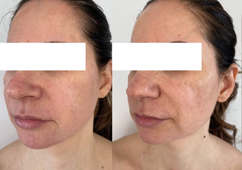 A 48-year-old female with Fitzpatrick skin type II presented to our clinic with moderate signs of photoageing on the face, recurrent solar lentigines, skin laxity and telangiectasias. She had previously undergone treatment with tyrosinase inhibitors and followed a strict photoprotection regimen, which resulted in minimal improvement to her skin condition. The treatment strategy consisted of a dual modality approach to target multiple conditions and depths in the skin in a single session.