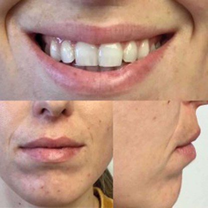 The examination revealed an asymmetrical lip support, along with ptosis and a ‘downturned smile’, caused by a loss of vertical height, as her previous dentist had ground her front teeth a few years ago for unknown reasons (Figure 9).